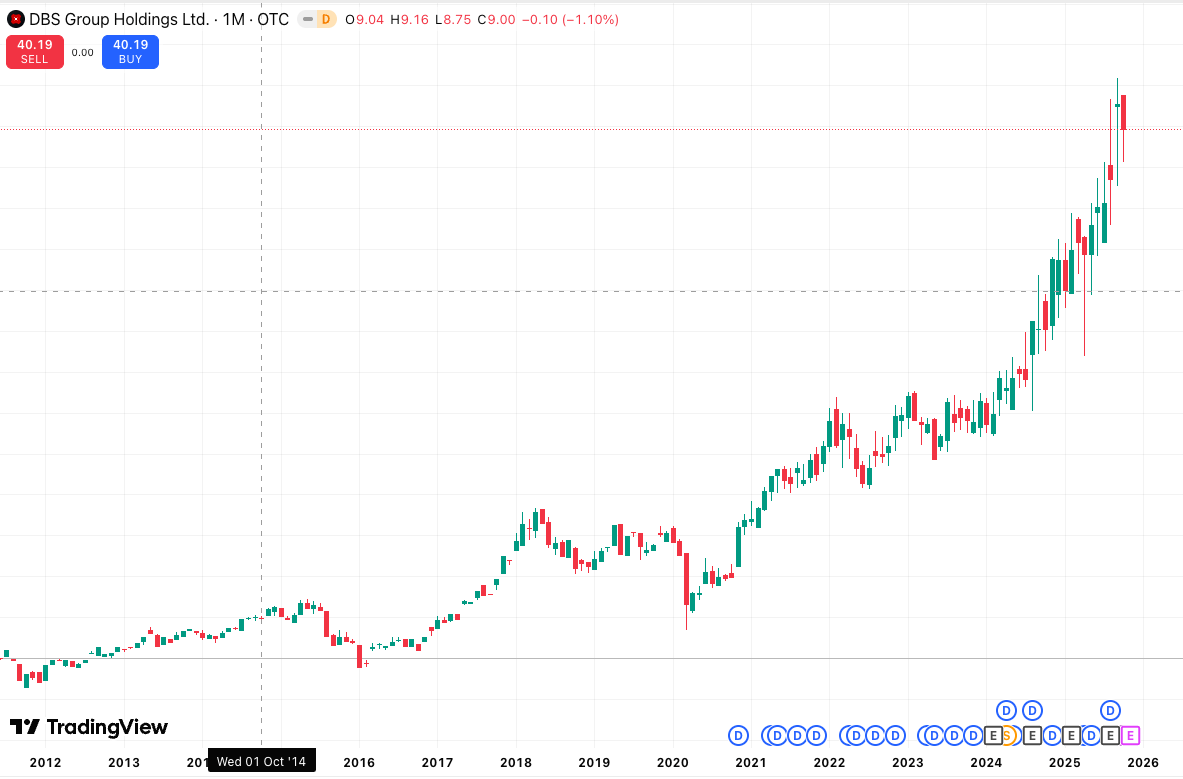 TradingView Chart of DBS Group Holdings with high capital gains with good dividend yield