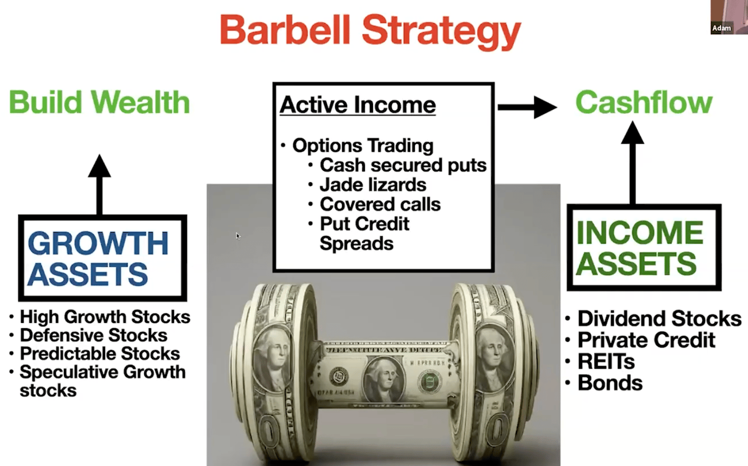 This is a more active strategy that concentrates investments at the two extremes of the risk spectrum while intentionally avoiding the middle ground.