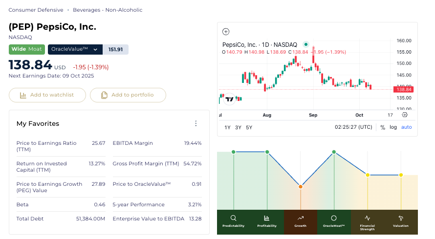 StockOracle™ – PepsiCo, Inc OracleIQ™ displaying good financial strength and high profitability