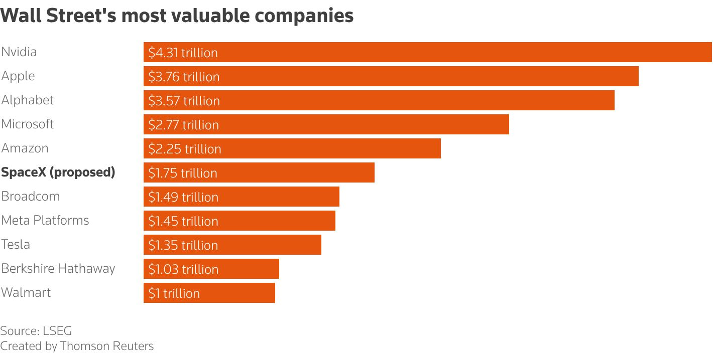 SpaceX has confidentially filed its S-1 with the SEC. And Bloomberg reports that the valuation target has climbed above $2 trillion, up from $1.75 trillion just two weeks ago and $1.25 trillion when the xAI merger closed in February. If it goes through, this will be the largest IPO in the history of capital markets, potentially raising up to $75 billion, nearly triple of Saudi Aramco's $25.6 billion record back in 2019.