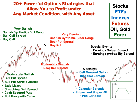 One of the biggest advantages of options trading is that you can profit in any market direction up, down, or even sideways. Traditional stock traders only make money when prices rise.