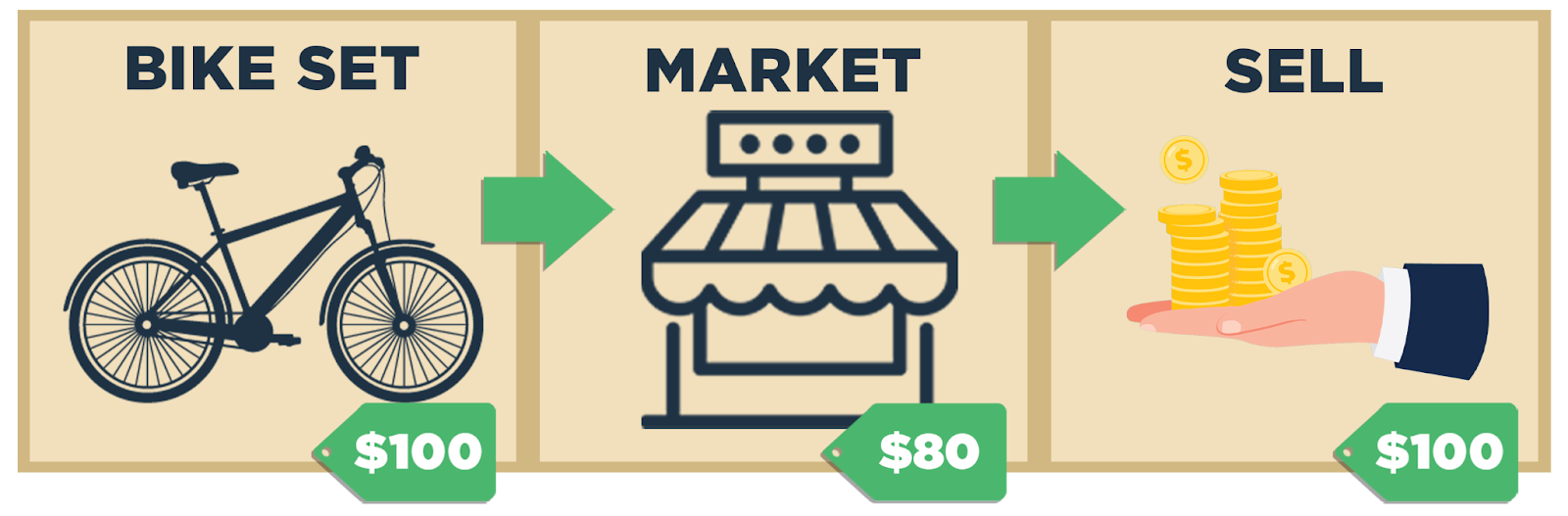 This time, you pay $5 to rent the option to sell the bike at a fixed price of $100, valid for one month. During that month, the bike’s market value drops to $80. Thanks to your option, you still have the right to sell it for $100, even though it’s now worth less.