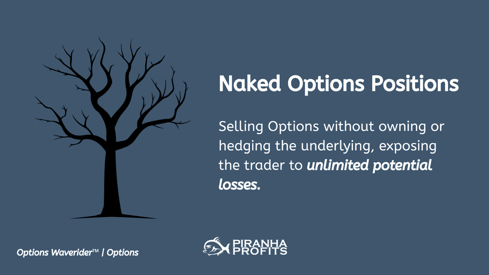 Now that you understand what calls and puts are, you should also know why naked positions are risky. A naked position means selling an option without owning or hedging the underlying stock.