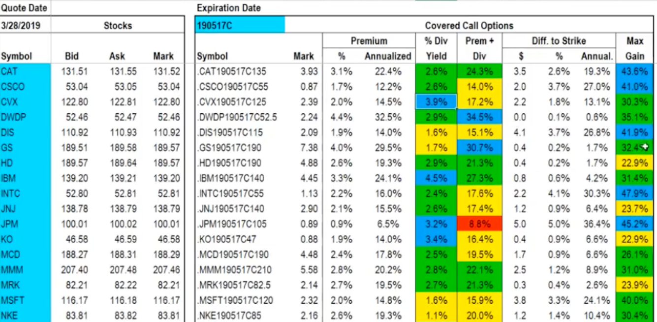 Each column in the covered call scanner provides data that helps identify the best opportunities: