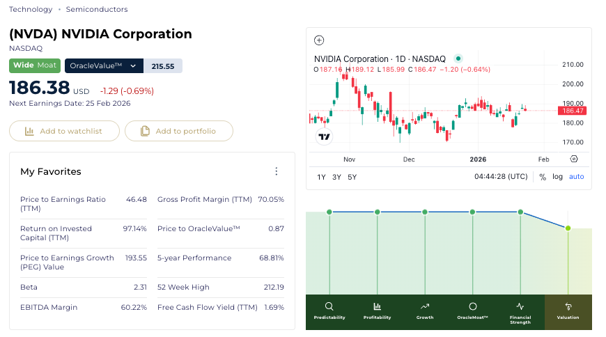 StockOracle™ NVIDIA (NVDA) Metrics 27th January 2026
