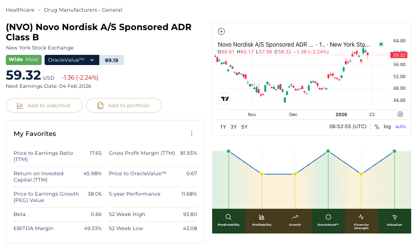 While competition from Eli Lilly is intensifying, the GLP-1 market faces eventual pricing pressure, patent risk, and slower growth in more mature regions. Each has the scale, pipelines, and manufacturing depth to remain central players over the long term. From an OracleValue™ estimate, however, valuation still tilts in Novo Nordisk’s favor. OracleValue™ estimates Novo Nordisk’s intrinsic value at USD 89 per share.