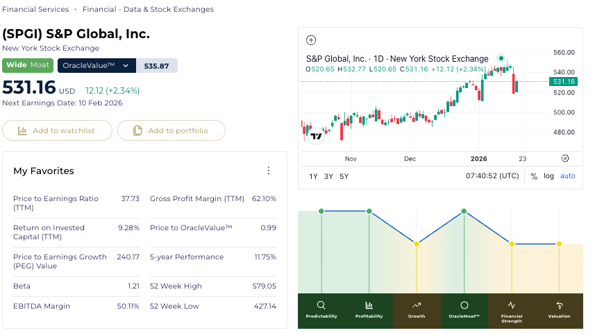 StockOracle™ S&P Global (SPGI) Metrics 22th January 2026