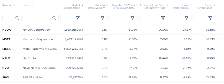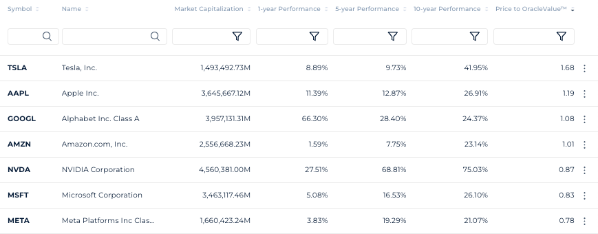Still, within the Magnificent Seven, Microsoft stands out as one of the cheaper stocks estimated by OracleValue™. With a price-to-OracleValue™ around 0.83, it appears more attractively valued than Google and Amazon, suggesting the market is pricing Microsoft more conservatively despite its strong position in AI, cloud, and enterprise software.