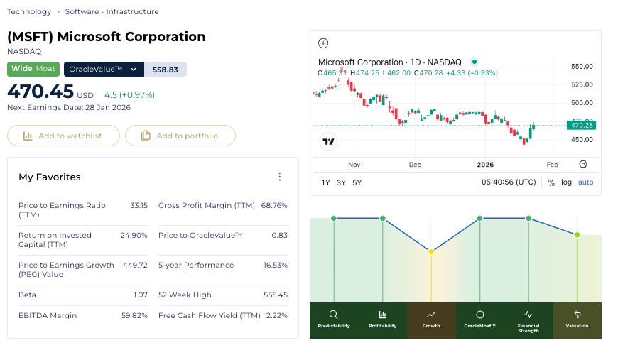 StockOracle™ Microsoft (MSFT) Metrics 27th January 2026