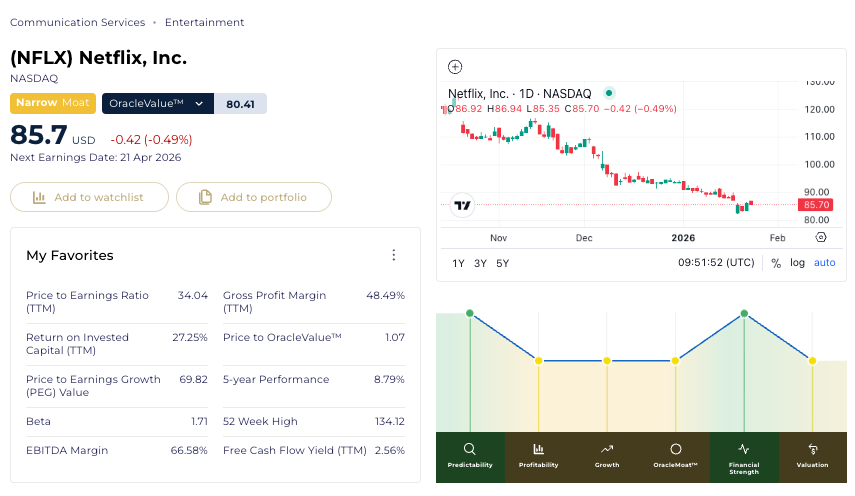 StockOracle™ Netflix (NFLX) Metrics 27th January 2026