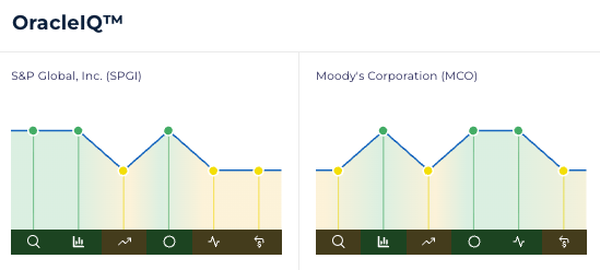 OracleIQ™ shows that both S&P Global (SPGI) and Moody’s (MCO) exhibit similar medium growth, consistent with their mature business models, with both posting estimated EPS growth of around 11% over the next five years.