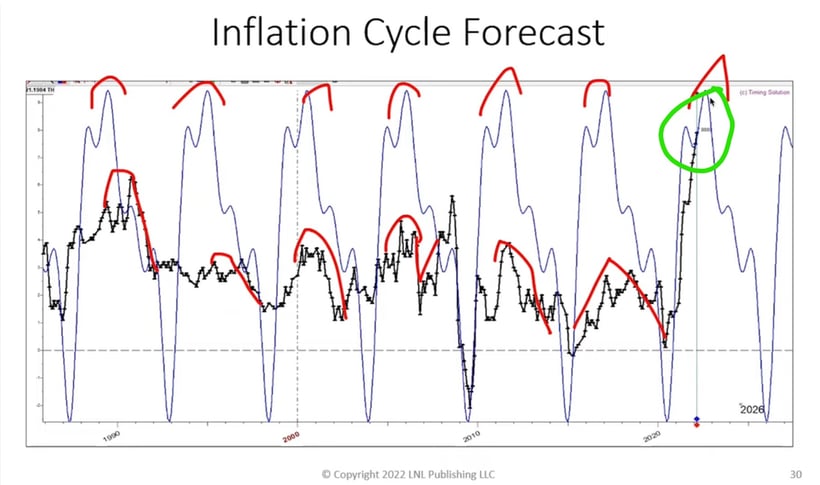 Again, once inflation comes down that would be EXTREMELY BULLISH for the markets. In fact, again if you take a look at Larry's research, he has shown that inflation peaks have been the ideal time to buy stocks. Whenever inflation peaks and starts to turn down, that's a great time to buy stocks.